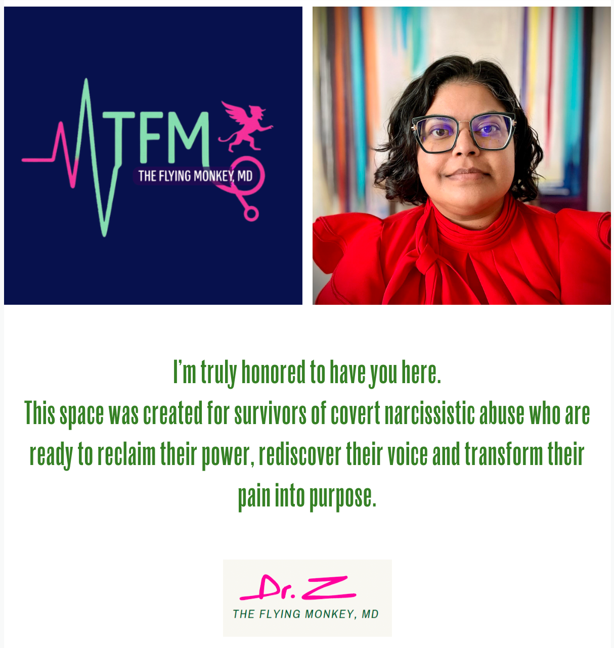 She is the founder of The Flying Monkey MD and the creator of the TFM Transformation Course, a trauma-informed, God-centered healing framework for survivors of covert narcissistic abuse.